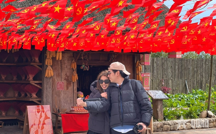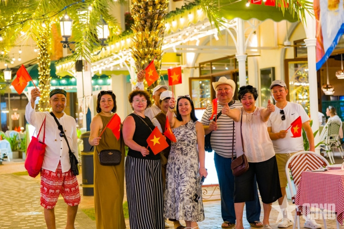 Nhiều du khách trong nước và quốc tế đến với các khu du lịch trong dịp này bày tỏ thích thú và hào hứng "check in" với không gian rực rỡ cờ hoa và những tấm pano, khẩu hiệu đầy ý nghĩa và ấn tượng.