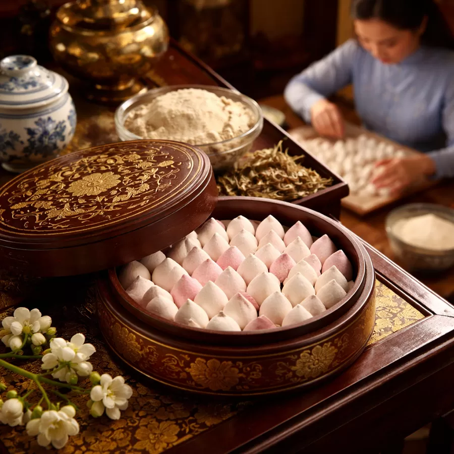 Bên cạnh những làng nghề thủ công và ẩm thực đặc sắc, Huế còn nổi tiếng với nghề làm phấn nụ - một sản phẩm làm đẹp mang đậm dấu ấn cung đình xưa. Phấn nụ từng được sử dụng trong hoàng cung triều Nguyễn, là bí quyết giúp các cung tần mỹ nữ giữ gìn làn da trắng mịn, thanh khiết.