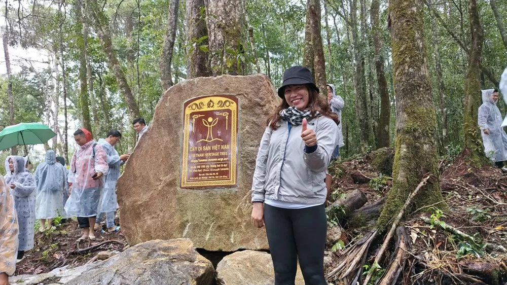 Du khách check-in tại quần thể thông đỏ quý hiếm thuộc Vườn